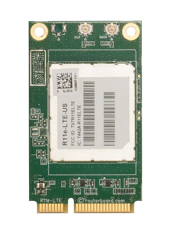 Mikrotik R11e-LTE-US, 2/4/5/12 bantları destekleyen 2G / 3G / 4G / LTE miniPCI-e kartı.